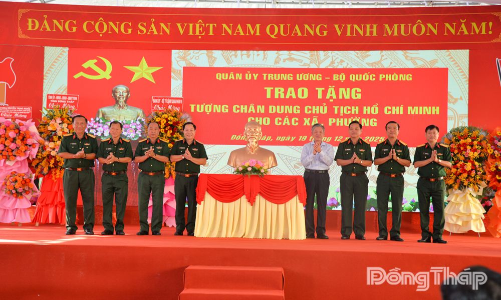 (DTO) On behalf of the Central Military Commission - Ministry of National Defense, on the morning of December 19, the Party Committee - High Command of Military Region 9 held a ceremony to present President Ho Chi Minh busts to 102 communes and wards in Dong Thap Province.
