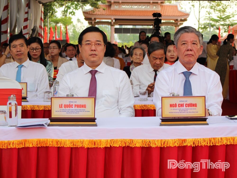Attending the ceremony were Comrades Tran Thanh Lam, Deputy Head of the Central Commission for Propaganda and Mass Mobilization; Phan Tam, Deputy Minister of Culture, Sports and Tourism; Ngo Chi Cuong, Member of the Party Central Committee, Secretary of the Dong Thap Provincial Party Committee, and Head of the Dong Thap National Assembly delegation; Le Quoc Phong, Member of the Party Central Committee and Standing Deputy Secretary of the Ho Chi Minh City Party Committee; Nguyen Hai Tram, Standing Deputy Secretary of the Dong Thap Provincial Party Committee; Chau Thi My Phuong, Deputy Secretary of the Provincial Party Committee and Chairwoman of the Provincial People’s Council; Pham Thanh Ngai, Deputy Secretary of the Provincial Party Committee and Chairman of the Provincial People’s Committee; former members of the Party Central Committee; former leaders of central ministries and agencies; Vietnamese Heroic Mothers; veteran revolutionaries; leaders of provinces and cities; current and former leaders of Dong Thap Province across terms; and members of the Nguyen Sinh family.