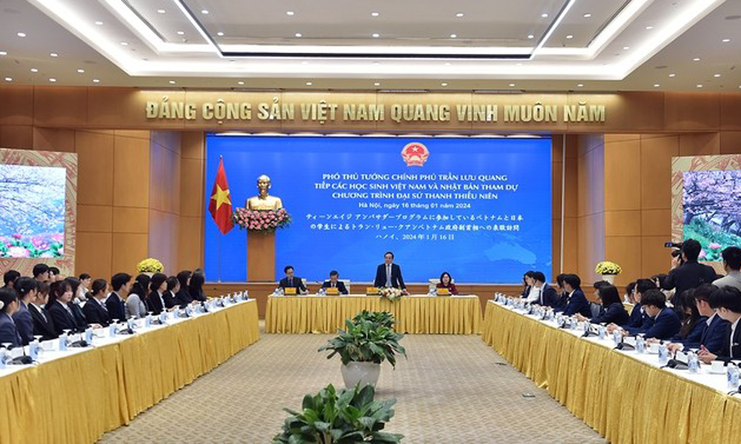 ABO/NDO- Deputy Prime Minister Tran Luu Quang hosted a reception in Hanoi on January 16 for a delegation of Vietnamese and Japanese students joining the Teenage Ambassadors’ Programme, which is organised to celebrate the 50th founding anniversary of Vietnam-Japan diplomatic ties.