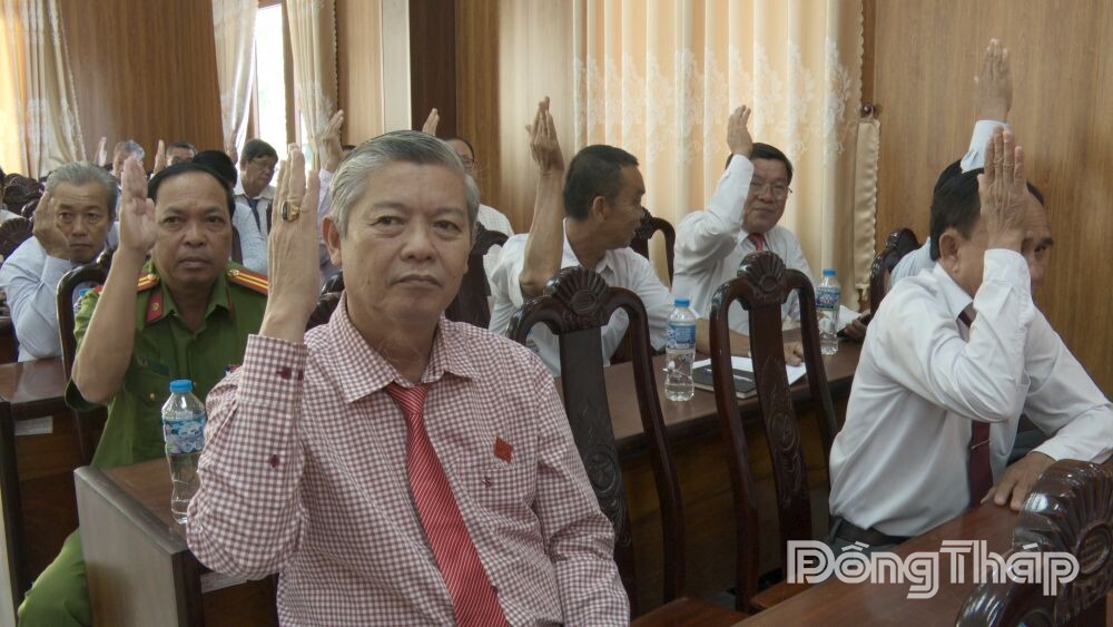 Chủ tọa kỳ họp có các đồng chí: Phạm Hùng Vinh, Bí thư Đảng ủy, Chủ tịch HĐND xã; Châu Ngọc Thẩm, Ủy viên Ban Thường vụ, Phó Chủ tịch HĐND xã.