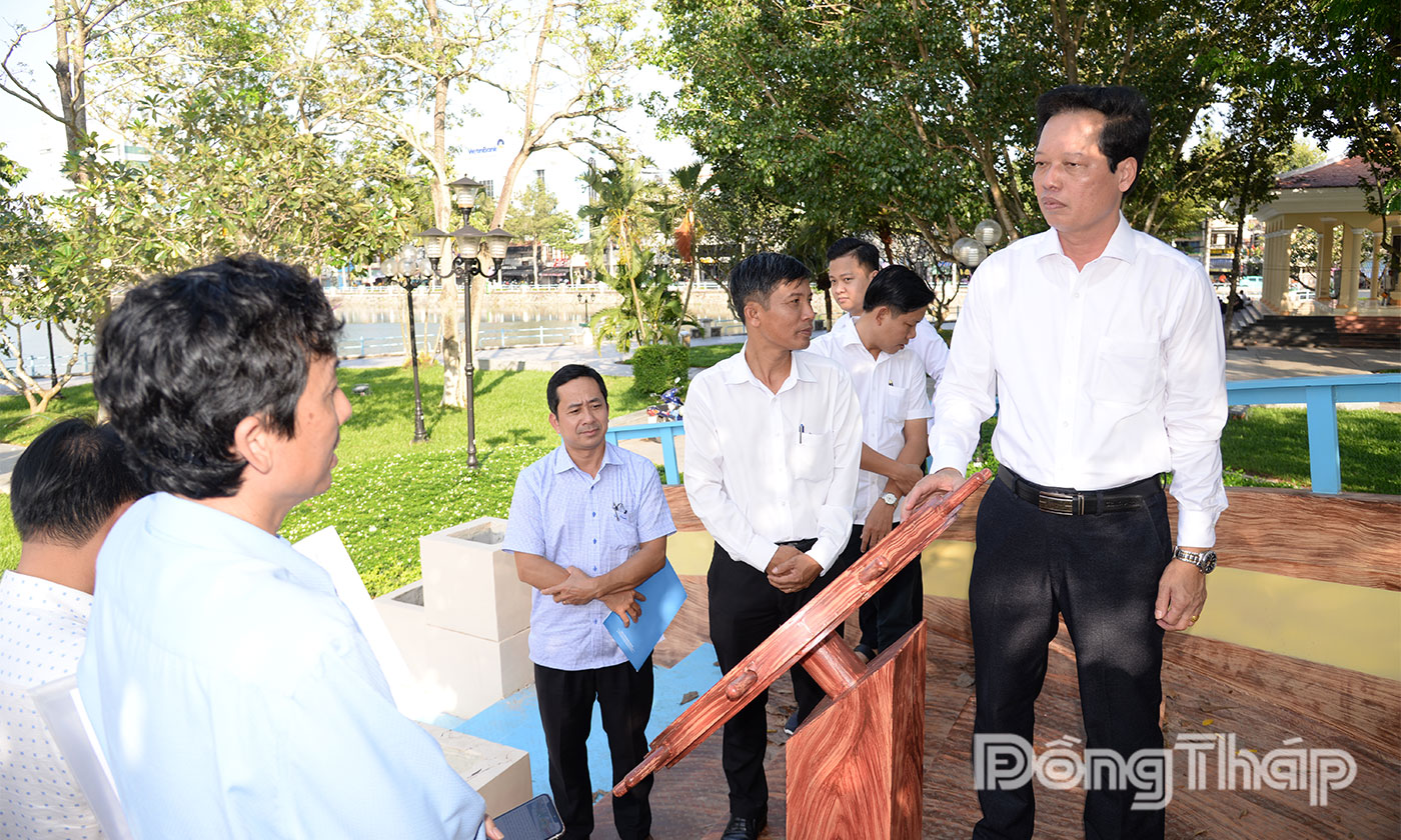 (ĐTO) Chiều 24-11, Phó Chủ tịch UBND tỉnh Đồng Tháp Nguyễn Thành Diệu đến khảo sát Dự án Phố đi bộ tại Công viên Tết Mậu Thân giai đoạn 1, Dự án Đường giao thông hai bên bờ sông Bảo Định.