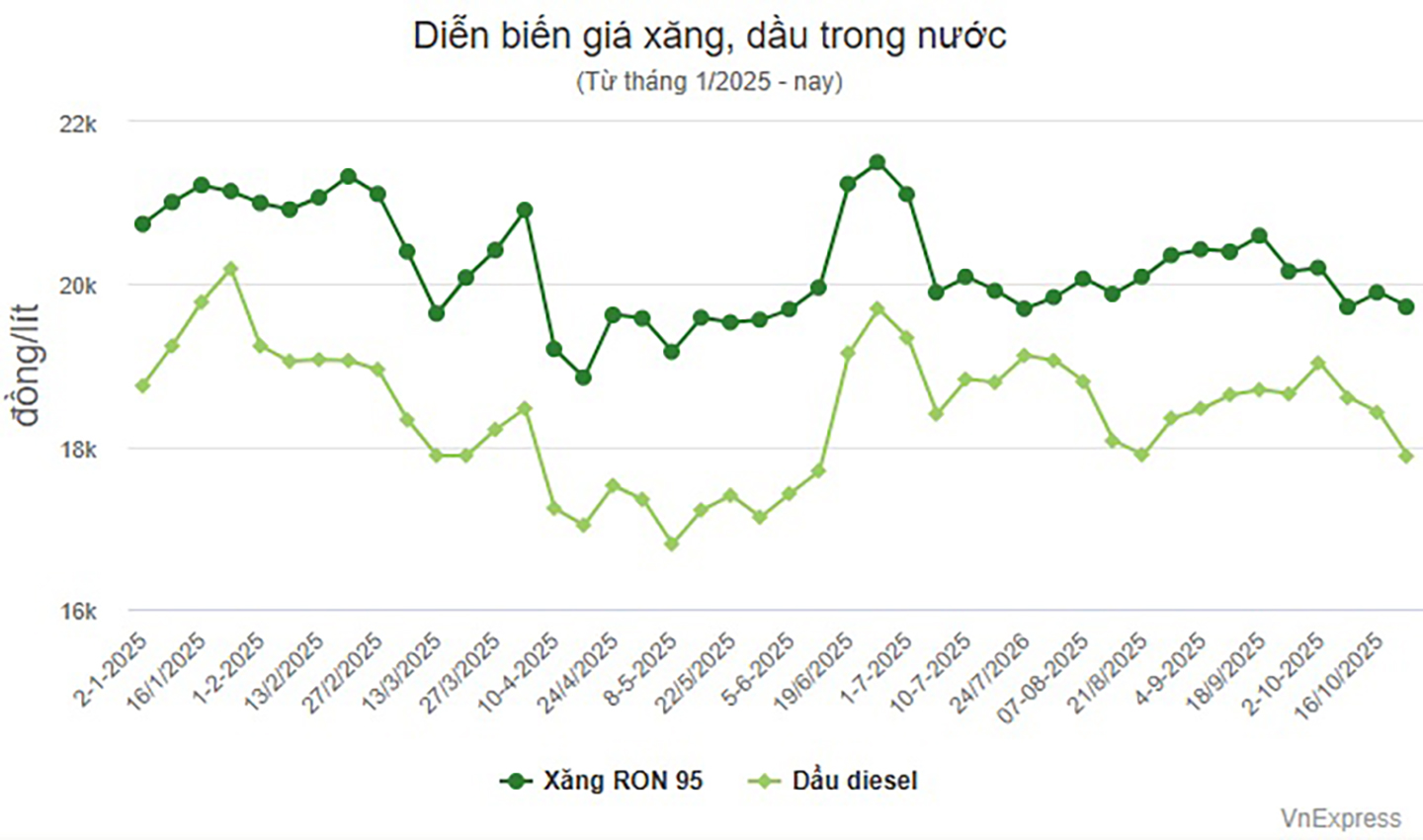 Theo Bộ Công thương, thị trường xăng dầu thế giới 7 ngày qua chịu ảnh hưởng từ nhiều yếu tố như Cục Dự trữ Liên bang Mỹ (Fed) giảm lãi suất, USD tăng giá, tồn kho dầu thô của Mỹ tăng. Trong khi đó, xăng và sản phẩm chưng cất giảm, OPEC+ thống nhất tăng nhẹ sản lượng khai thác dầu trong tháng 12 và tạm dừng tăng sản lượng khai trong quý I-2026.
