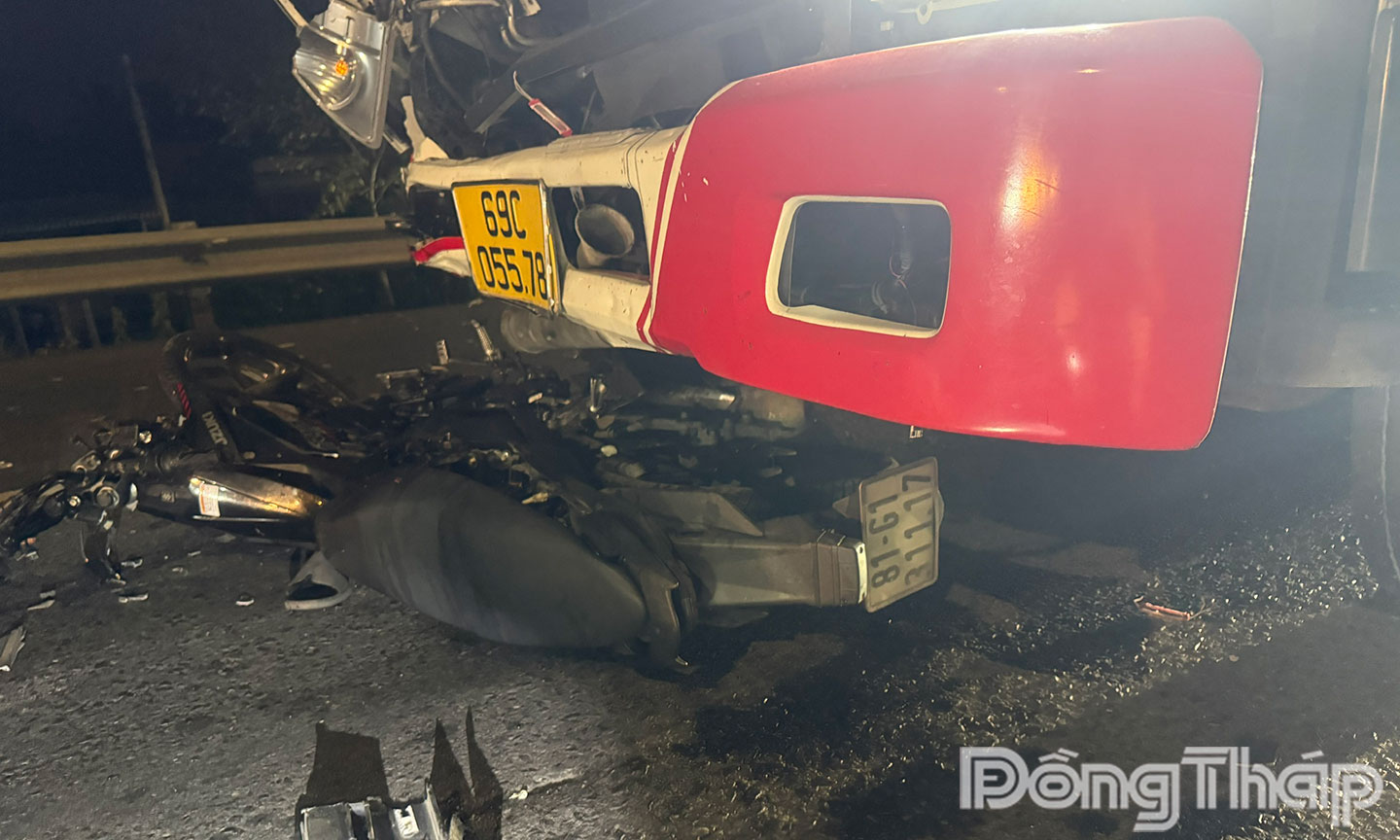 Khi đến đoạn gần dốc cầu Cai Lậy đoạn thuộc phường Thanh Hòa, tỉnh Đồng Tháp thì xảy ra va chạm với xe máy do anh Lê Văn Tiến (24 tuổi, quê tỉnh Gia Lai) chở theo chị Lưu Huỳnh Phương Ngân (22 tuổi, ngụ tỉnh Cà Mau) chạy theo chiều ngược lại.