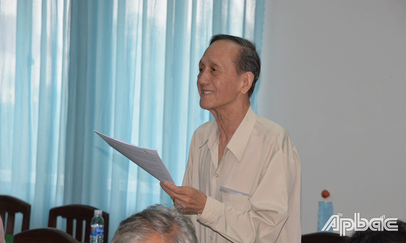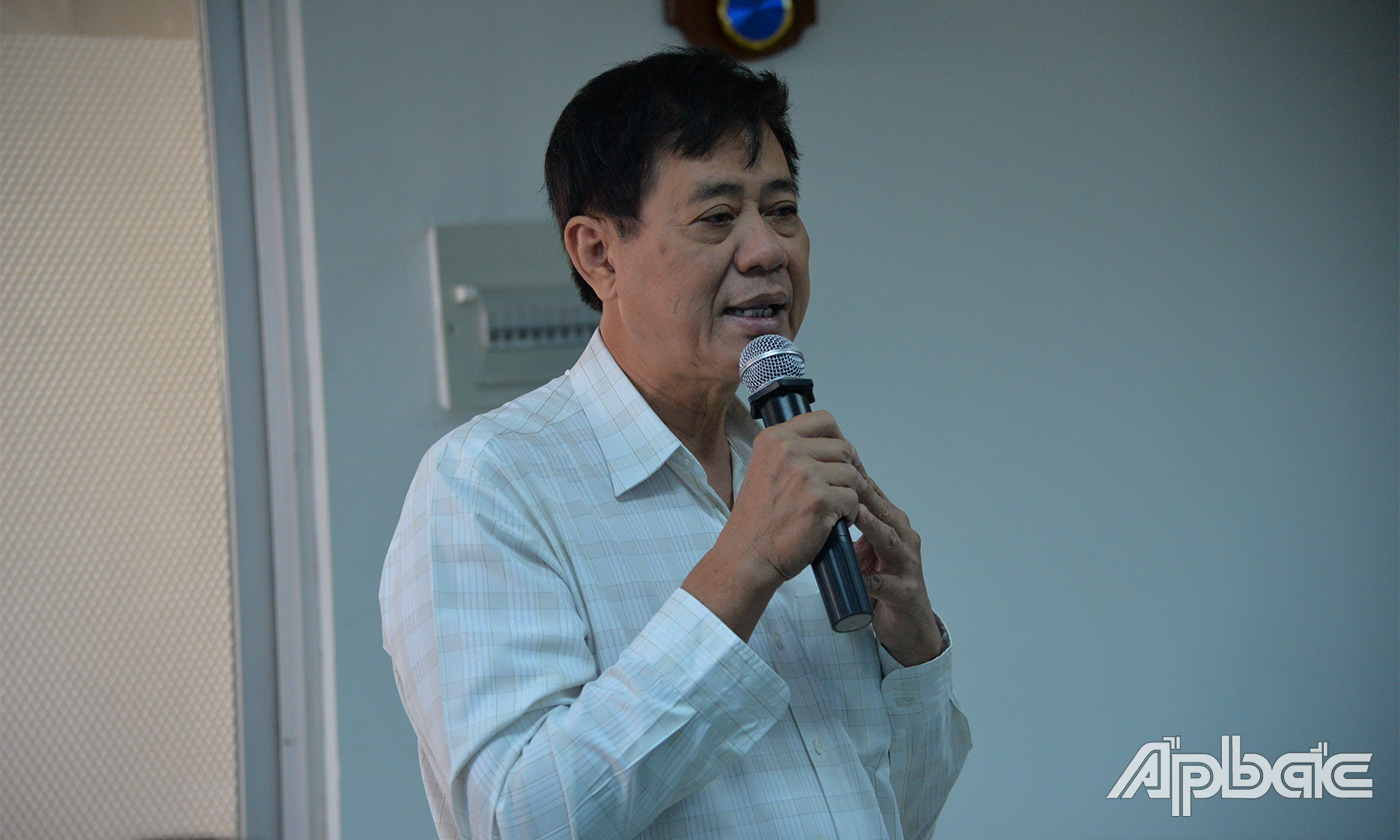| Chủ tịch Liên hiệp Hội tỉnh Tiền Giang Nguyễn Văn Khang phát biểu tại hội nghị. |