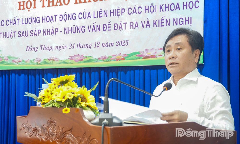 (ĐTO) Sáng 24-12, Liên hiệp các Hội Khoa học và Kỹ thuật (Liên hiệp Hội) tỉnh Đồng Tháp tổ chức Hội thảo khoa học với chủ đề “Nâng cao chất lượng hoạt động của Liên hiệp các Hội Khoa học và Kỹ thuật sau sáp nhập - những vấn đề đặt ra và kiến nghị”.