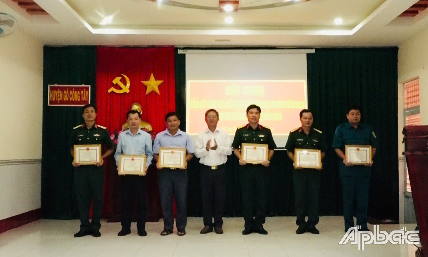 | UBND huyện Gò Công Tây khen thưởng các tập thể, cá nhân có thành tích trong thực hiện diễn tập, thực hiện phong trào thi đua quyết thắng năm 2024. |