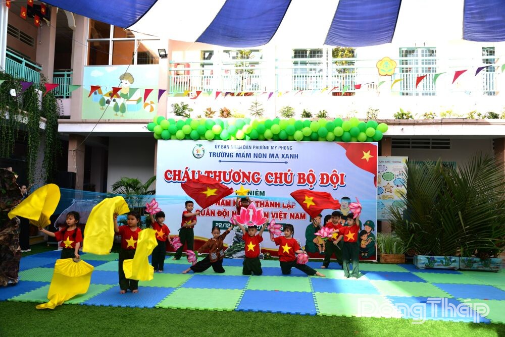 (ĐTO) Sáng 12-12, nhân kỷ niệm 81 năm Ngày thành lập Quân đội nhân dân Việt Nam (22-12-1944 - 22-12-2025) và 36 năm Ngày hội Quốc phòng toàn dân (22-12-1989 - 22-12-2025), Trường Mầm non Mạ Xanh (phường Mỹ Phong, tỉnh Đồng Tháp) tổ chức Ngày hội “Cháu thương chú bộ đội” cho các bé trong nhà trường.
