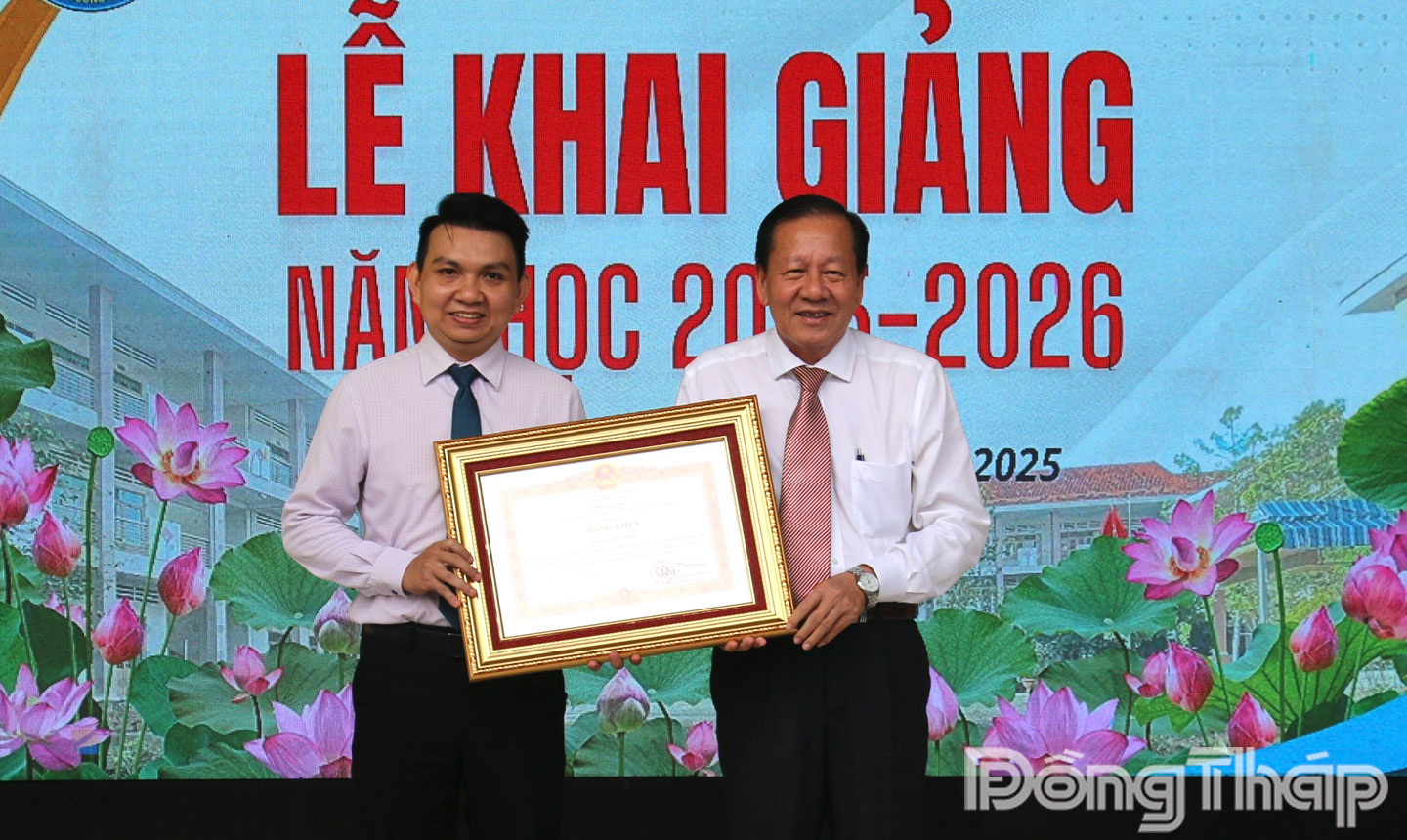 | Đồng chí Phan Văn Hợp, Ủy viên Ban Thường vụ, Chủ nhiệm Ủy ban Kiểm tra Tỉnh ủy Đồng Tháp trao Bằng khen của Thủ tướng Chính phủ cho giáo viên có thành tích trong công tác giáo dục và đào tạo từ năm học 2019 - 2020 đến năm học 2023 - 2024. |