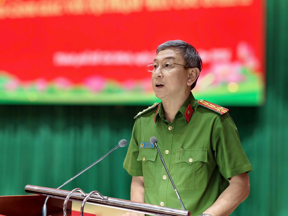 Đại tá Trần Hồng Minh, Phó Giám đốc Công an TPHCM chủ trì hội nghị.