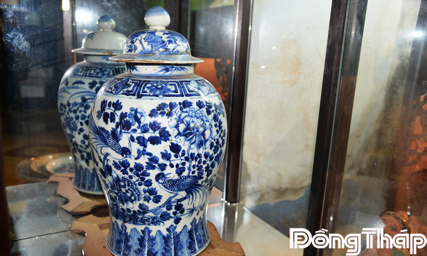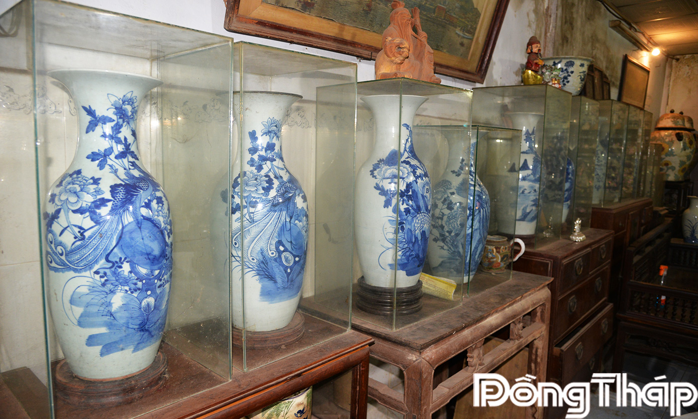 Đâu là cổ vật ông tâm đắc nhất? Giải đáp cho sự thắc mắc của chúng tôi, ông Phước chỉ tay về những chiếc bình cổ được lộng kính xếp ngay ngắn trong phòng khách. Ông cho biết, đây là 2 chiếc bình gốm sứ quý nhất mà ông sưu tầm được từ triều đại nhà Thanh, kiểu dáng và hoa văn tinh tế; dù đã hơn 200 năm, nhưng đến nay, chúng vẫn còn nguyên vẹn, không bị sứt, mẻ.