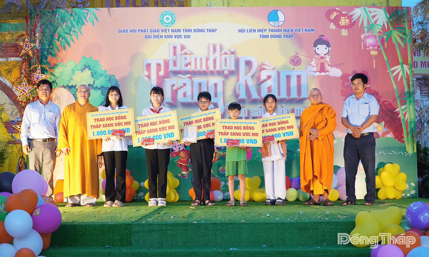 (ĐTO) Giáo hội Phật Giáo Việt Nam tỉnh Đồng Tháp - Đại diện khu vực VIII phối hợp cùng Hội LHTN Việt Nam tỉnh Đồng Tháp, UBND - Ủy ban MTTQ Việt Nam và Đoàn Thanh niên xã Tân Đông vừa tổ chức Đêm hội trung thu với chủ đề “Lồng đèn thắp sáng ước mơ”, tại chùa Liên Hoa (ấp Tân Tây 1, xã Tân Đông).