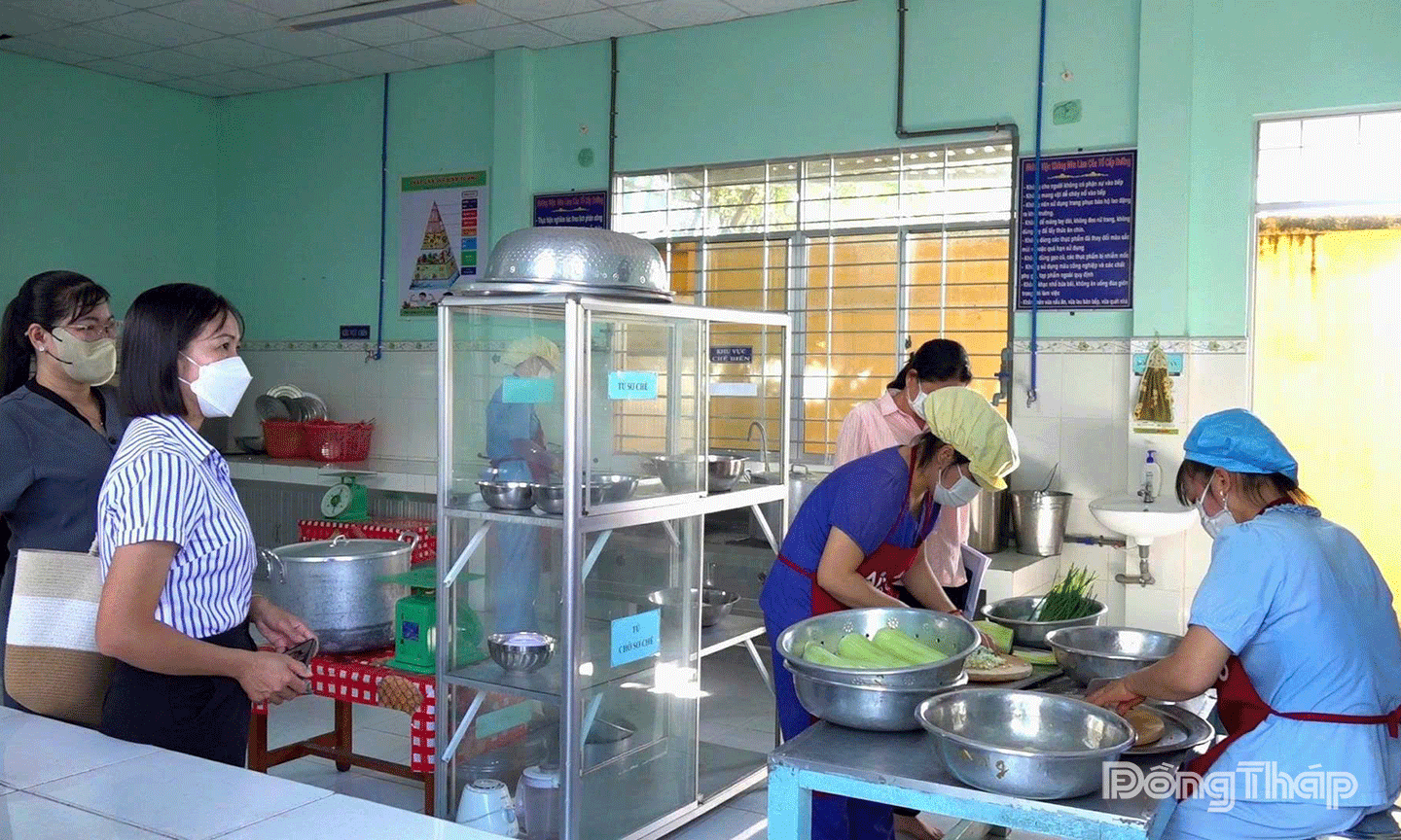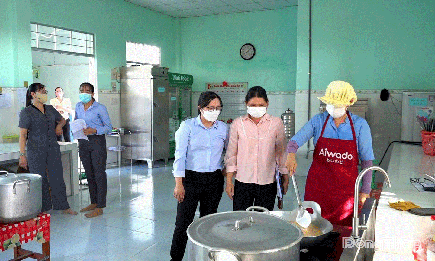 Tại buổi làm việc, Đoàn giám sát đã kiểm tra trực tiếp tế các bếp ăn của trẻ và khu vực ăn của trẻ, kiểm tra quy trình chế biến, bố trí bàn ghế và điều kiện vệ sinh... Qua đó, đoàn đánh giá cao công tác bán trú của trường, đảm bảo sự sạch sẽ, gọn gàng và cách thức phục vụ phù hợp với trẻ, đảm bảo an toàn vệ sinh thực phẩm.