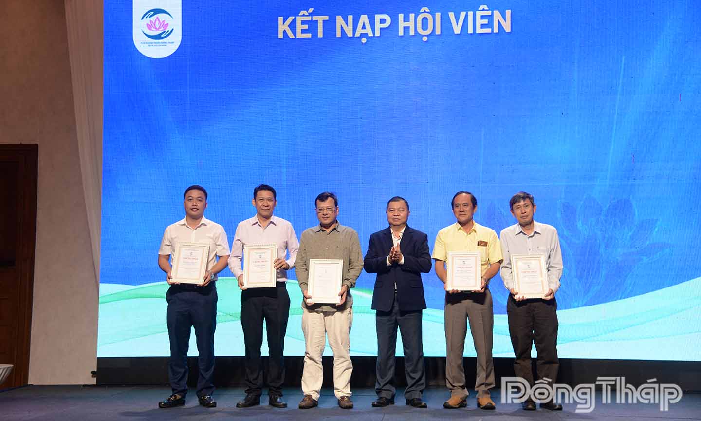 Trao giấy chứng nhận hội viên cho các hội viên mới tham gia Câu lạc bộ Doanh nhân Đồng Tháp tại TP. Hồ Chí Minh. |