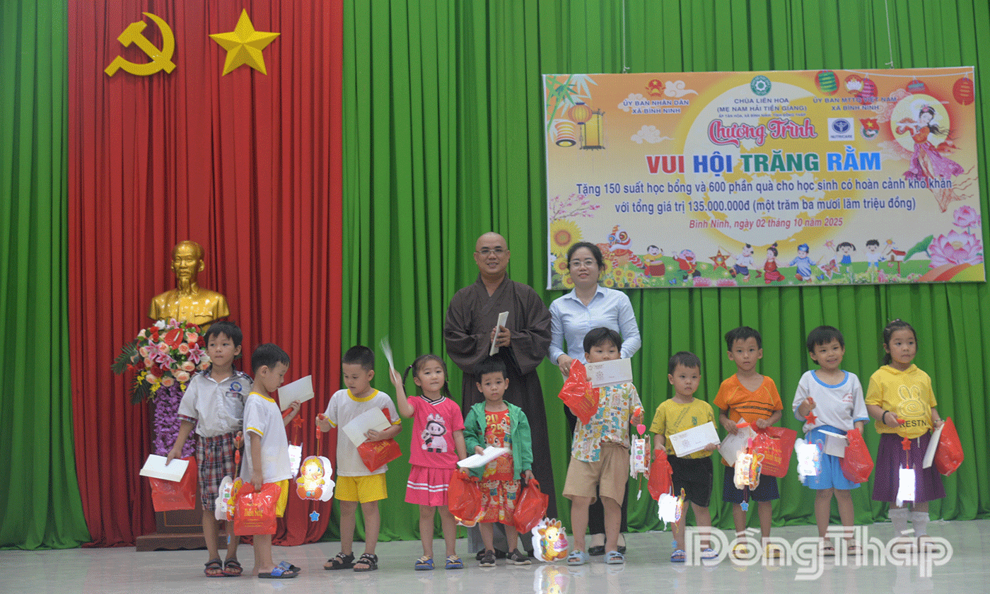 Tại buổi lễ, đại diện chính quyền địa phương và đơn vị tài trợ ân cần thăm hỏi, động viên và gửi lời chúc các em thiếu nhi có một mùa Trung thu vui tươi, đầm ấm. Hoạt động ý nghĩa này không chỉ mang đến một mùa Trung thu ấm áp cho các em nhỏ, mà còn thể hiện sự quan tâm, sẻ chia của các đơn vị, nhà hảo tâm đối với trẻ em có hoàn cảnh khó khăn. Qua đó, góp phần lan tỏa tinh thần nhân ái trong cộng đồng.
