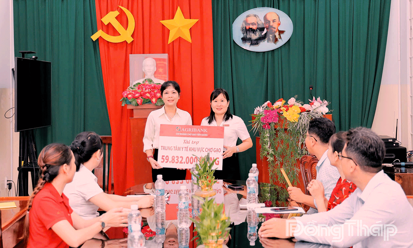 (ĐTO) Đoàn Ngân hàng Nông nghiệp và Phát triển nông thôn chi nhánh Chợ Gạo (Agribank chi nhánh Chợ Gạo) do Phó Giám đốc phụ trách Agribank chi nhánh Chợ Gạo Nguyễn Anh Thy làm Trưởng đoàn vừa đến trao tặng trang thiết bị lĩnh lực y tế và giáo dục tại xã Chợ Gạo và xã Bình Ninh (tỉnh Đồng Tháp).