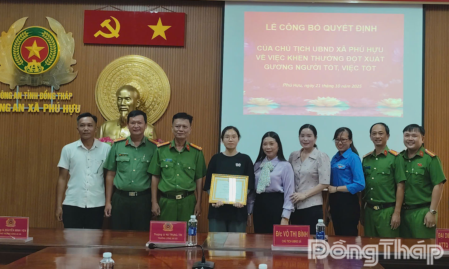 (ĐTO) Ngày 21-10, Chủ tịch UBND xã Phú Hựu đã trao khen thưởng đột xuất cho em Phạm Nguyễn Anh Thư (sinh năm 2015), ngụ ấp Tân An, xã Phú Hựu vì nhặt được của rơi, trả lại người đánh mất.