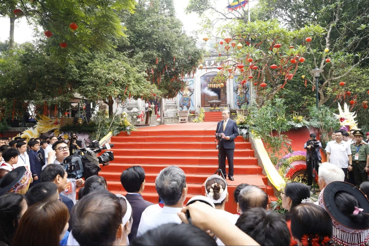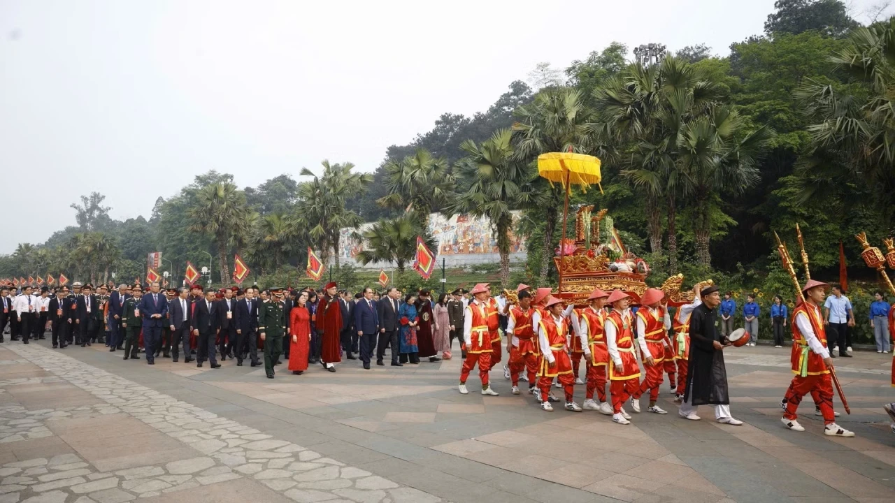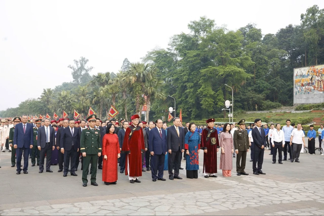 Đúng 7 giờ sáng 26/4/2026 (tức mùng 10/3 Âm lịch) - Ngày Giỗ Tổ Hùng Vương, tại Khu di tích lịch sử Quốc gia Đặc biệt Đền Hùng (tỉnh Phú Thọ), Tổng Bí thư, Chủ tịch nước Tô Lâm cùng các đồng chí lãnh đạo, nguyên lãnh đạo Đảng, Nhà nước khởi hành lên núi Nghĩa Lĩnh để dâng hương tưởng niệm các vua Hùng.